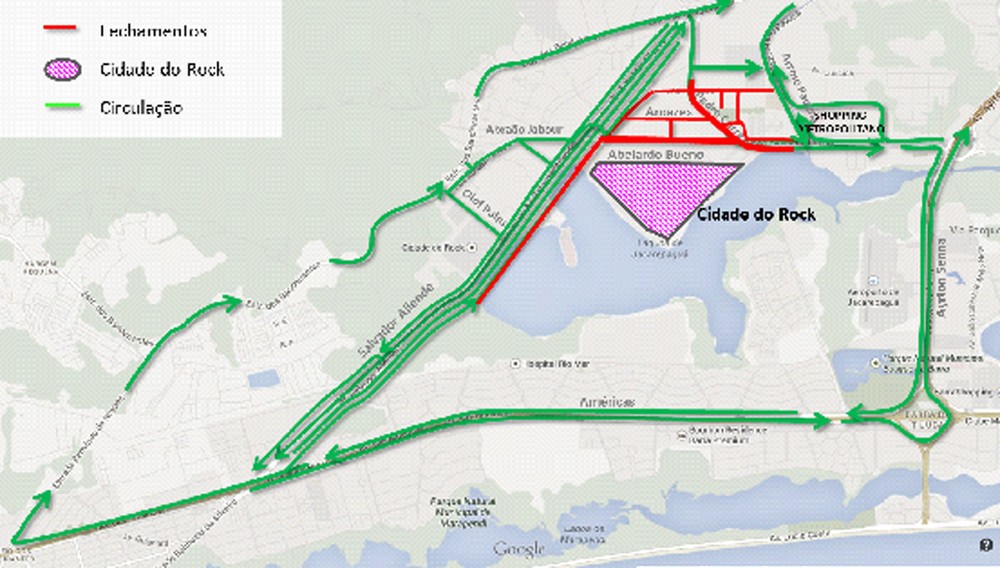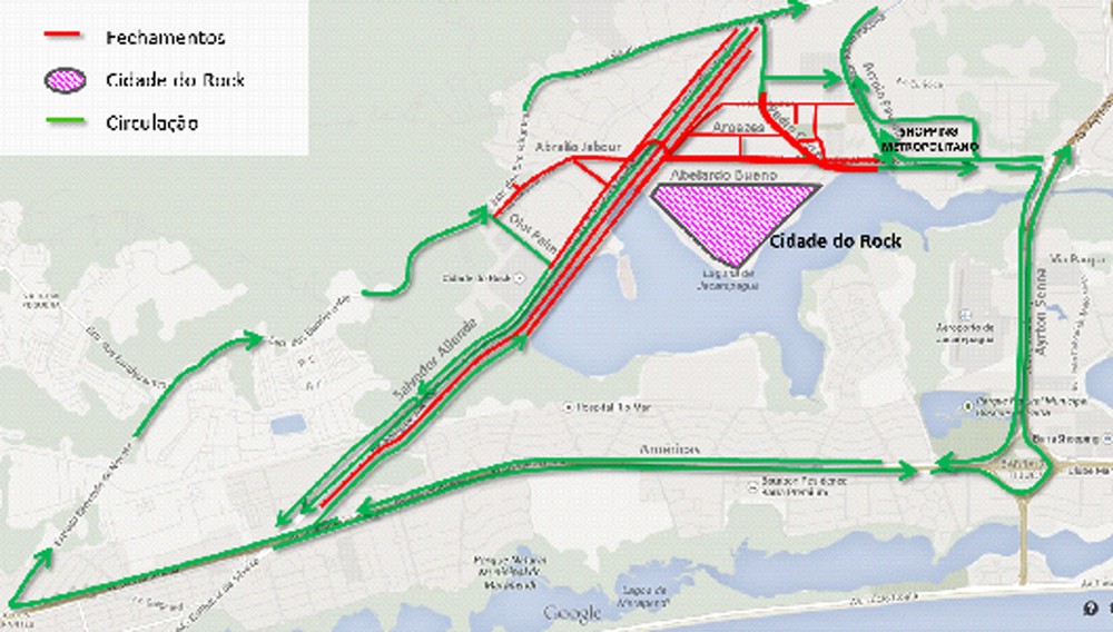 Com as interdições na Av. Salvador Allende e na Av. Embaixador Abelardo Bueno, os veículos que normalmente trafegam por estas vias, deverão utilizar as seguintes rotas alternativas: